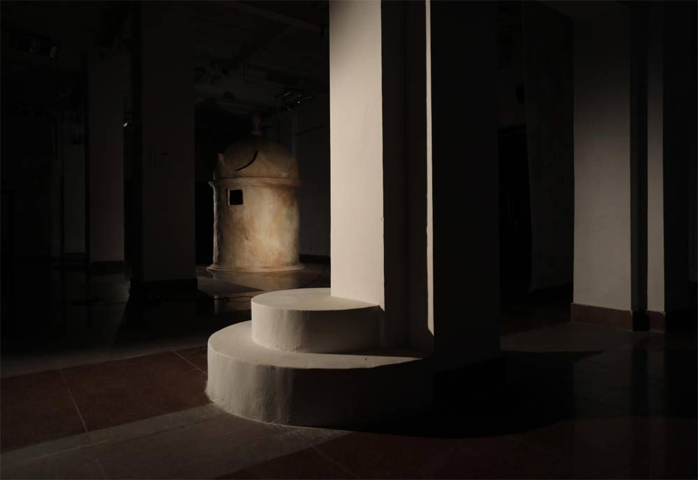 Inspired by and modelled after the Genizah at Kolkata’s Jewish cemetery, this site specific project explores the notions of historiography and memory in the Jewish-Indian context. Kolkata’s Jewish cemetery hosts two Genizahs: One is a repository in which old and damaged books are collected through a small window in its domed and circular structure, while the other – following the Jewish custom – is sealed in the ground.